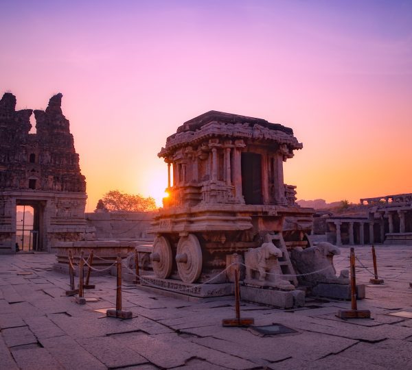 The intricately carved Stone Chariot, made of granite, is a must-see and one of the most photographed structures in Hampi.